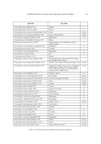Worldwide checklist of the island mutillid wasps (Hymenoptera Mutillidae) 563