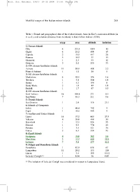 Table 1. Faunal and geographical data of the studied islands. Area (in Km2), maximum altitude (in
