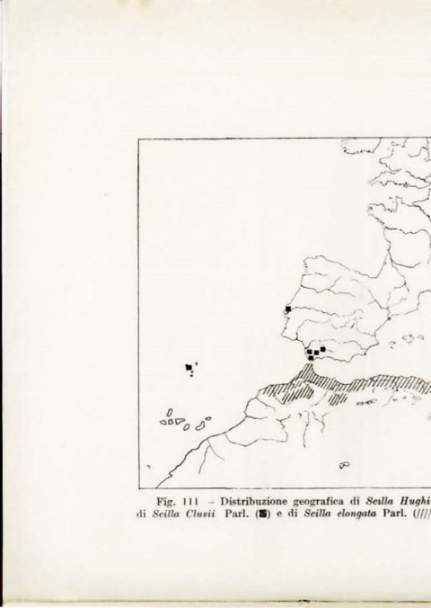 Fig. Ili - Distribuzione geografica di Scllll• Hughii Tin. ( e ). di Scilla sic"la Tin. (A ), di Scillf1 C1t7J(I11i GuRS. ( x ), Iii ~ci/la Clusii Pari. (8 ) e di Scilla tlongata Parl. (////).