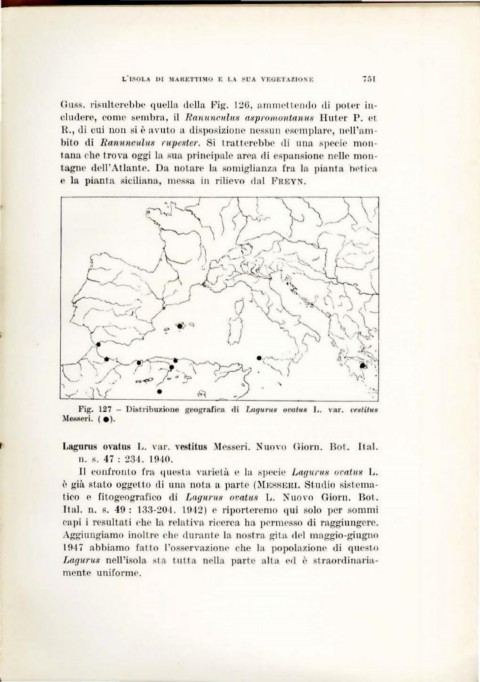 Fig. 127 - Distl'ibuziono gcogrruira rli Lagurus OtJ(I/118 1.. l'Ili'. crsti/tl8