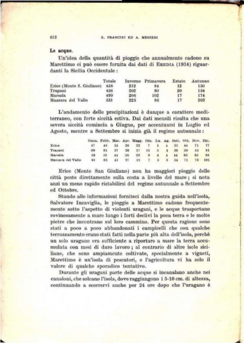 Eric<' (l\!onte San Giuliano) non hn maggiori pioggie delle