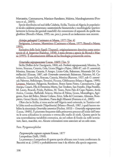 ca); Palermo, Bellolampo, Terrasini, Ficuzza, Gibilmanna (Massa e Ragusa, 1999);