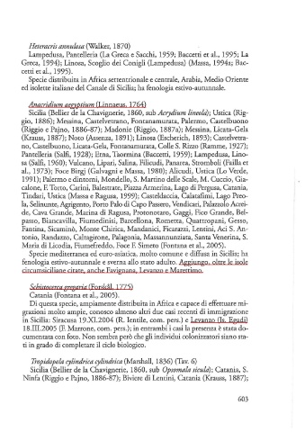 (Krauss, 1887); Noto (Assenza, 1891); Linosa (Escherich, 1893); Castelvetra-