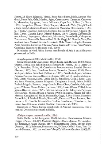 pedusa (Baccetti et al., 1995); Palermo e dintorni, M. Pellegrino, Partinico,