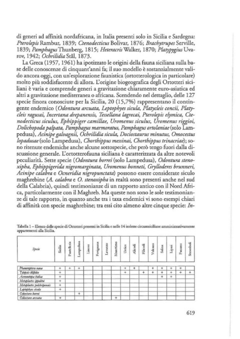 Tabella l -Elenco ddle specie di Ortorteri presenti in Sicilia e nelle 14 isolette circumsiciliane amministrativamente
