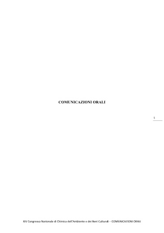 COMUNICAZIONI ORALI 1 XIV Congresso Nazionale di Chimica dell’Ambiente e dei Beni Culturali – COMUNICAZIONI ORALI