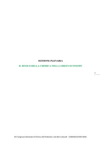 SESSIONE PLENARIA IL RUOLO DELLA CHIMICA NELLA GREEN ECONOMY 2 XIV Congresso Nazionale di Chimica dell’Ambiente e dei Beni Culturali – COMUNICAZIONI ORALI