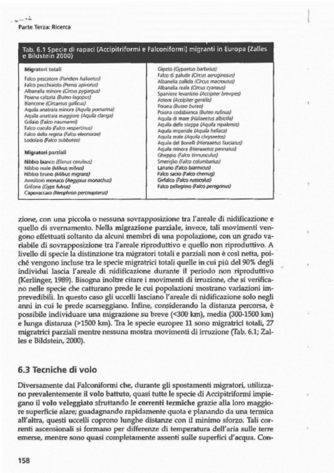 6.3 Tecniche di volo ti. Dei 209 individui rilasciati 36 furono in seguito catturati. I giovani tendevano