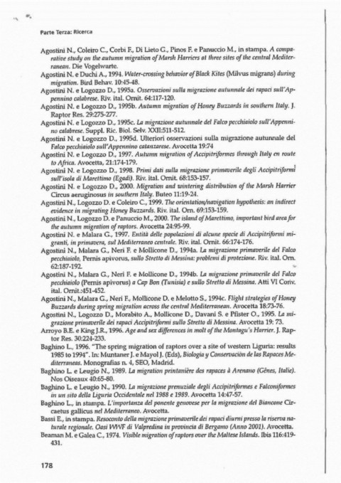 Baghino L., 1996. "The spring migration of raptors over a s ite of western Liguria: results Gargioni A., in stampa. Contributo alla conosCfllza della migrazione autunnale del Falco pec-