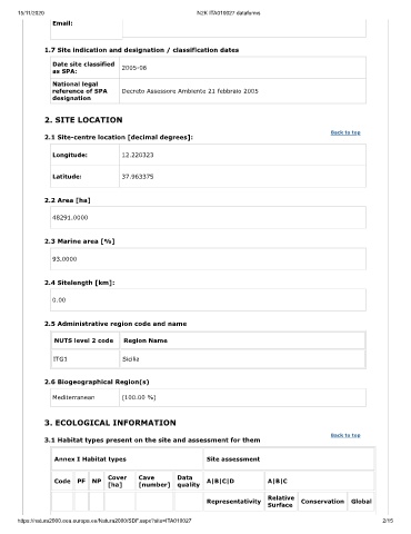 https://natura2000.eea.europa.eu/Natura2000/SDF.aspx?site=ITA010027 2/15