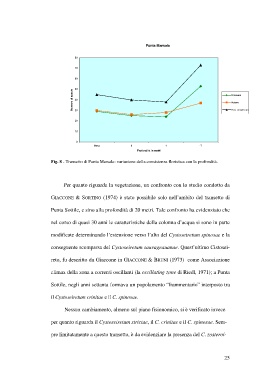 Fig. 8 - Transetto di Punta Marsala: variazione della consistenza floristica con la profondità.