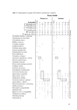 Tab. 1: Campionamenti eseguiti a P.ta Sottile in primavera e autunno