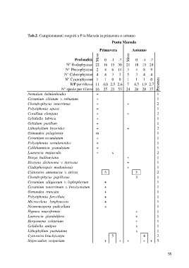 Tab.2: Campionamenti eseguiti a P.ta Marsala in primavera e autunno