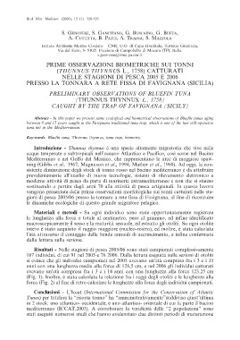 Key-words: Bluefin tuna, Thunnus thynnus, tuna trap, biometry.