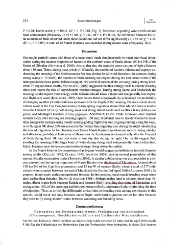 df = l, P > 0.05). A total of 44 Marsh Harriers was recorded during absent wind (frequency 16 h).