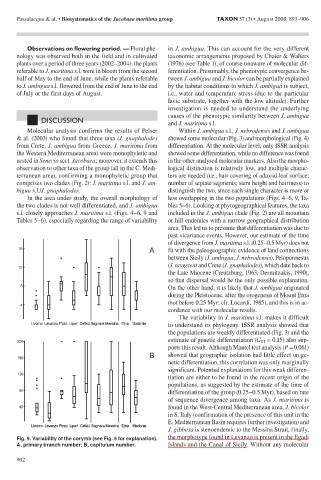 from Crete, J. ambigua from Greece, J. maritima from differentiation. At the molecular level, only ISSR analysis
