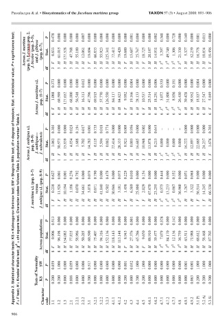 J. maritima s.l. (pop. 1–7) versus J. ambigua s.l. (pop. 8–9) P Stat. df 0.627 0.238 F 1 0.001 11.526 F 1 0.001 10.194 H 1 0.276 1.186 H 1 0.792 0.070 H 1 0.000 34.661 H 1 0.079 3.078 H 1 0.790 0.071 H 1 0.000 41.840 H 1 0.479 0.502 H 1 0.000 30.846 H 1 0.075 3.181 H 1 0.229 1.458 F 1 0.010 6.589 H 1 0.000 25.880 F 1 0.154 2.029 F 1 0.000 67.670 H 1 0.000 23.255 H 1 χ ² 0.448 0