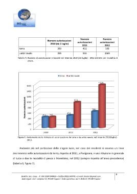 decremento nelle autorizzazioni da terra, rispetto al 2011, a Favignana, e una riduzione in generale