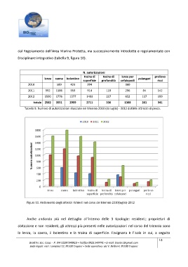 Tabella 9. Numero di autorizzazioni rilasciate nel triennio 2010 (da luglio) - 2012 distinte attrezzo di pesca.