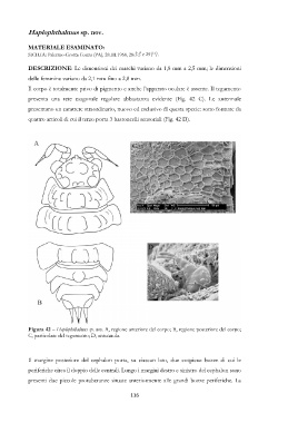 Figura 42 – Haplophthalmus sp. nov. A, regione anteriore del corpo; B, regione posteriore del corpo;