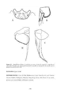 Figura 83 - Armadilloniscus ellipticus. A, cephalon in visione dorsale; B, uropodi; C, esopodite ed