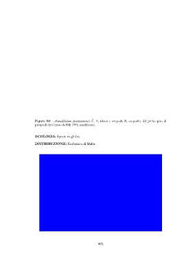 Figura 164 - Armadillidium ghardalamensis ♂. A, telson e uropodi; B, esopodite del primo paio di pleopodi (da Caruso & Hili 1991, modificata). ECOLOGIA: Specie troglobia DISTRIBUZIONE: Endemica di Malta. 405