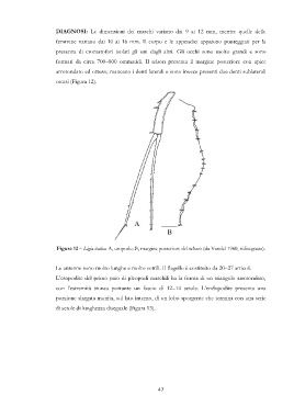 Figura 12 – Ligia italica. A, uropode; B, margine posteriore del telson (da Vandel 1960, ridisegnata).
