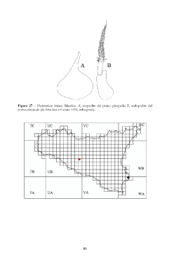 Figura 27 – Nesiotoniscus helenae. Maschio. A, esopodite del primo pleopode; B, endopodite del primo pleopode (da Brisolese e Caruso 1974, ridisegnata). 86