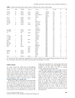 region hosting the cheek teeth and the incisors. In both cases, point to the centre of gravity of the outline) were calculated.