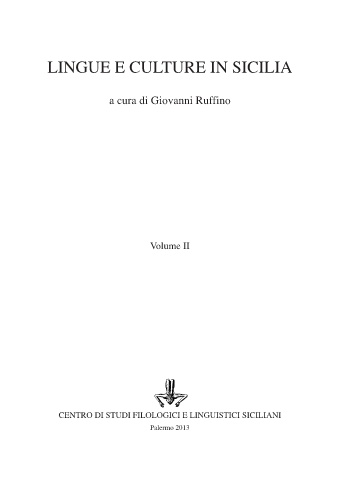 LINGUE E CULTURE IN SICILIA a cura di Giovanni Ruffino Volume II CENTRO DI STUDI FILOLOGICI E LINGUISTICI SICILIANI Palermo 2013