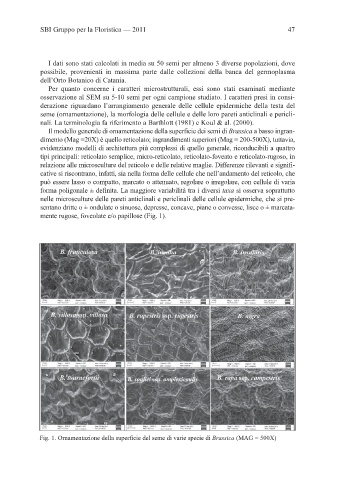 Fig. 1. Ornamentazione della superficie del seme di varie specie di Brassica (MAG = 500X)