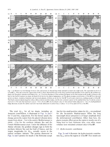 Fig. 1. (a) Relative sea-level change between 12 ka andpresent for the melting of the nominal ice sheets on a rigidearth. The equivalent sea level at