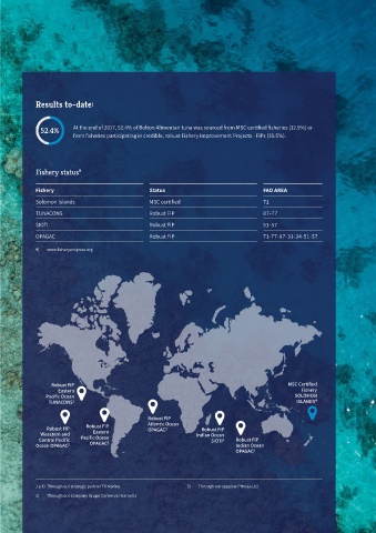 52.4% At the end of 2017, 52.4% of Bolton Alimentari tuna was sourced from MSC certified fisheries (12.9%) or
