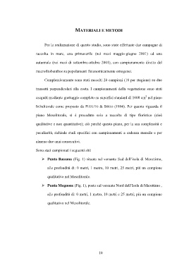 piano Mesolitorale, si è proceduto solo a raccolte di tipo floristico (cioè