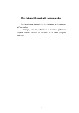 Qui di seguito sono riportate le descrizioni di alcune specie riscontrate