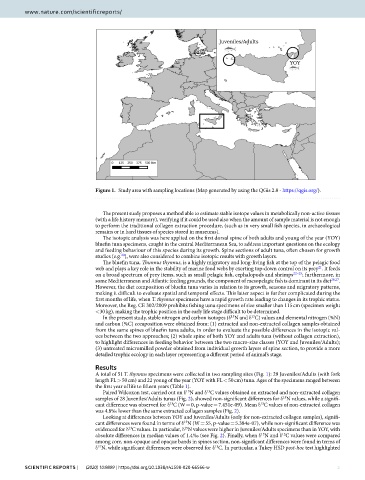 T e isotopic analysis was here applied on the f rst dorsal spine of both adults and young of the year (YOY)