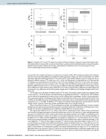Figure 2. Boxplot of δ C and δ N values from spines of T unnus thynnus. Top panels report the boxplots only