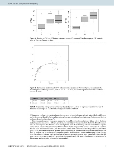 Figure 4. Exponential model f tted to δ N values recorded in spines of T unnus thynnus in relation to FL.