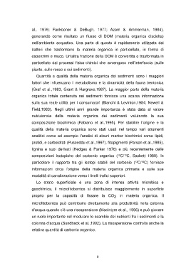 nutrizionale della materia organica dei sedimenti valutando la sua
