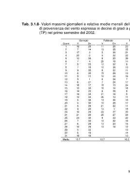 Tab. 3.1.8- Valori massimi giornalieri e relative medie mensili della