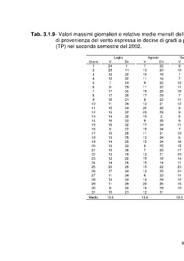Tab. 3.1.9- Valori massimi giornalieri e relative medie mensili della