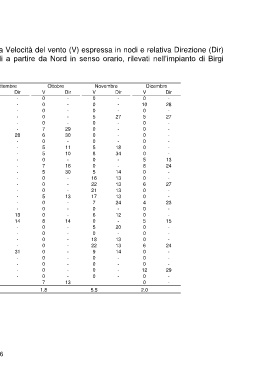 a Velocità del vento (V) espressa in nodi e relativa Direzione (Dir)