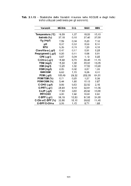 Tab. 3.1.15 – Statistiche delle Variabili misurate nelle ACQUE e degli Indici