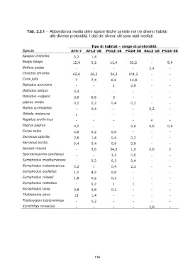 Tab. 3.3.1 – Abbondanza media delle specie ittiche censite nei tre diversi habitat