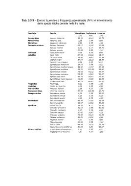 Tab. 3.3.3 – Elenco faunistico e frequenza percentuale (Fr%) di rinvenimento