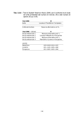 Tab. 3.3.6 – Test di Student-Newman-Keuls (SNK) per il confronto tra le isole