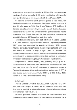 CHO) particellati e sedimentari sono stati calcolati usando rispettivamente