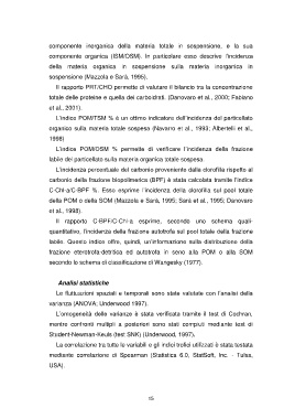 organico sulla materia totale sospesa (Navarro et al., 1993; Albertelli et al.,