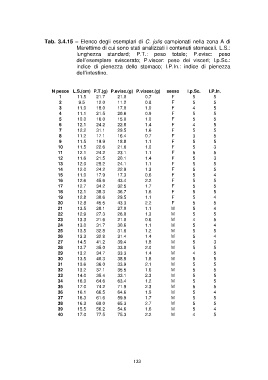 Tab. 3.4.15 – Elenco degli esemplari di C. julis campionati nella zona A di