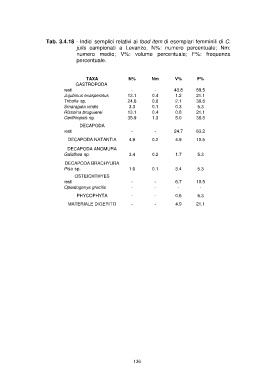 Tab. 3.4.18 - Indici semplici relativi ai food item di esemplari femminili di C.